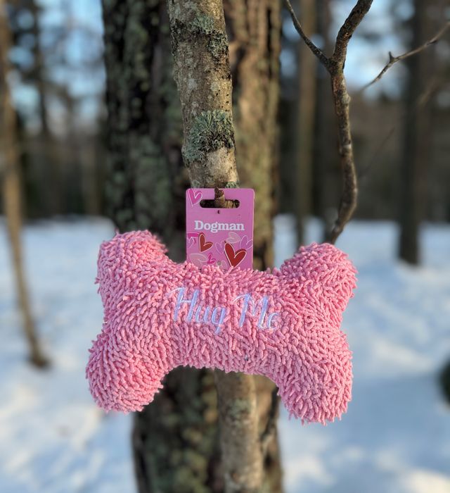 Mjuk, mysig, rosa leksak med pip i. Med texten “Hug Me” på framsidan, perfekt att skämma bort din hund med. Längd 22,5cm